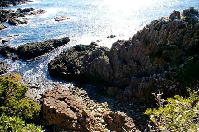 ![]() 柱状節理(六角形の玄武岩)が不思議な美しさを・・これだけしっかり見えるのは少ないそうです! |
