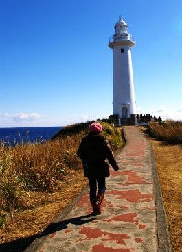 ![]() 爪木崎灯台昭和12年(1937) 南10k沖合の神子元島(みこもとしま)灯台(石造りでは日本最古の明治3年) |