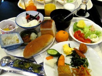 ![]() 朝食バイキングは¥750 味噌汁の具にお湯を入れたら「ほうじ茶」だがや! 新しい味覚? |
