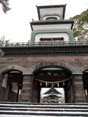 ![]() 朝食は朝早い団体さんの都合で8時からなので、1人で散歩に出かけた。 尾山神社 |