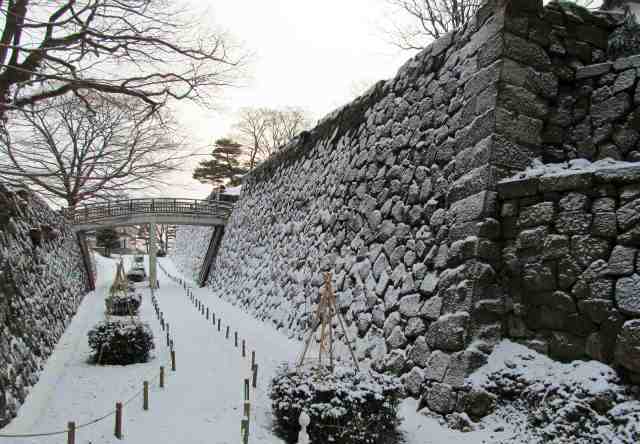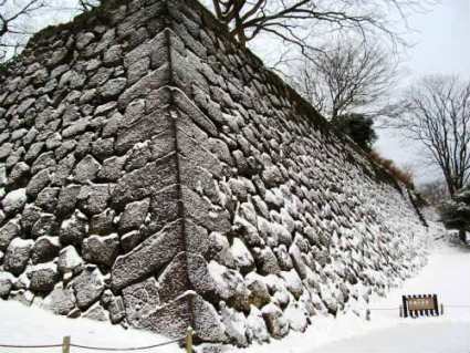 ![]() 本丸へ続く “極楽橋” 石垣が見事です。 石垣は「金場取り残し積み」で表面の縁取りだけをきれいにそろえ、内側を粗いままにしておく。 |