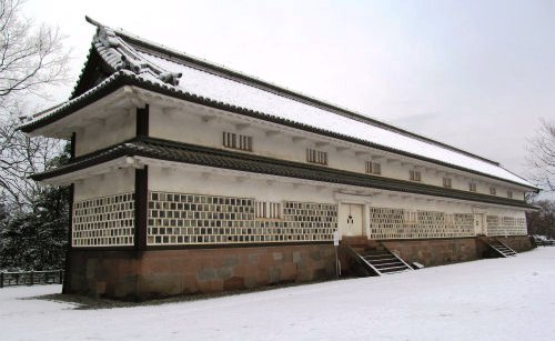 ![]() “菱櫓” 2001年に復元された。当時は大手と搦手(からめて)を見張る物見櫓として重要な役割を持った。 建物の平面が菱形(内角が80度と100度)になっており、死角を少なくし視野を大きくする効果がある。 “橋爪門続櫓” 天守閣を持たない金沢城では、二の丸が政治の中枢を担っていた。 その二の丸の正門である橋爪門を見下ろす位置にある物見櫓。 |
