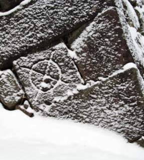 ![]() 石を切り出す時の作業分担などの為につけられた刻印が残る |
