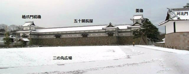 ![]() 戌亥櫓跡より>左端が石川門櫓 |