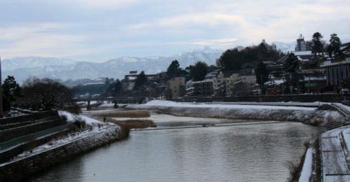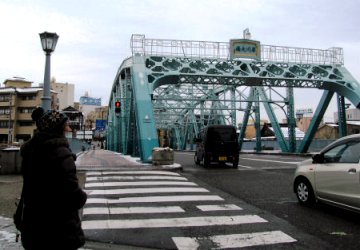 ![]() 片町で下車し、犀川さいかわを渡る。「ふるさとは遠きにありて思ふもの そして悲しくうたふもの・・・」 で、有名な 詩人・小説家「室生犀星」の故郷である。 |