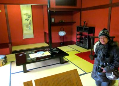 ![]() 2Fは金屏風や長火鉢などを配したお座敷に、芸妓さんの扇子や三味線、太鼓などが置かれ、 ベンガラの綺麗な「赤」の壁が粋で華やかな空間が広がっていました。贅沢な場所です。 |