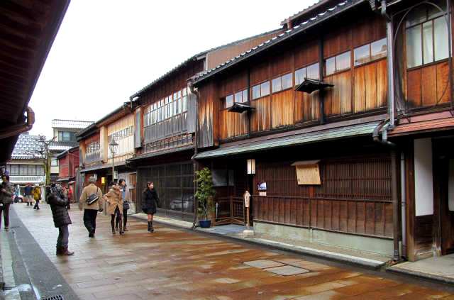 ![]() ひがし茶屋街のメインストリートです。 西と比べると規模が大きいです。 |