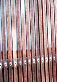 ![]() ![]() 左)強風雨で雨が入ったり、めくれにくく杉板で補強 中)米屋の暖簾は見られたくない小分けを隠すため 右)目隠しの細い板にも外からは見ぬくく、中から見やすい細工(1本づつ内側に角度が付いている) |