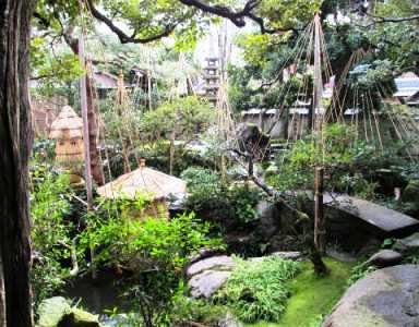 ![]() ![]() 庭には多宝塔、灯籠(薦こもが被せられている)などが配置され小堀遠州好みの「真の庭」の代表的な庭園です。 庭の水は大野庄用水から引き込んで、また用水へ循環させる。 |