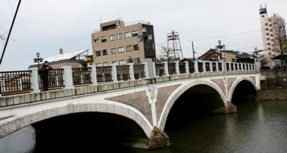 ![]() 『浅野川大橋』 美しいアーチ型が大正ロマンを伝え、国の登録有形文化財に指定。 橋を渡ると『ひがし茶屋街』が見えてきます。 |