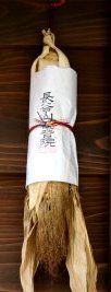 ![]() 軒先に下げられた“とうもろこし” 有名なのは東山の観音院で毎年8月(旧暦7月9日)に行われる「四万六千日」。 藩政期以来の宗教行事で、この日に参拝すると、四万六千日分(126年分)のご利益があると。 祈祷を受けた“とうもろこし”が売られ、軒先に1年間吊るすと家内安全・商売繁盛などの功徳があるそうです。 |