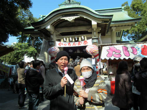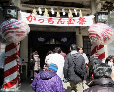 ![]() かっちん玉という縁起物の飴を受ける事で安産・子授・厄除・生育を願う祭。 かっちん玉飴は毎年2月26日の例大祭の日にしか買うことが出来ない。 |