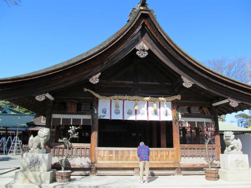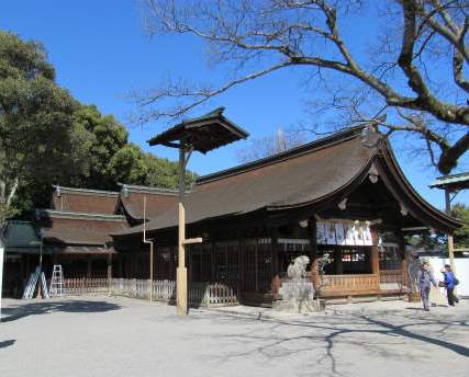 ![]() 国府宮の「社紋」 本殿の修復中でした。総費用13億円・・・ |