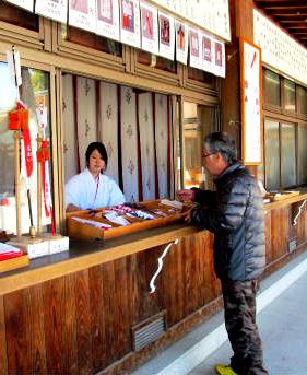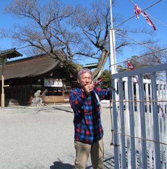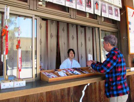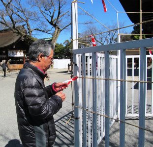 ![]() Osima氏と古い「なおい布」を古神札納所に返納中、一年間の無病息災の役目を終えた。 |