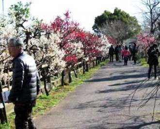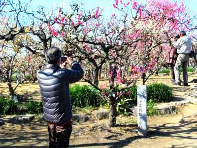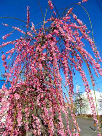 ![]() 満開の枝垂れ梅は見事です |