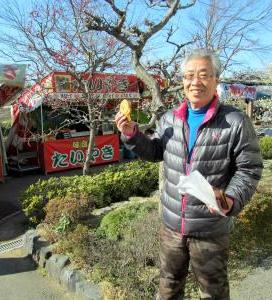 ![]() たい焼きを買ったぞー! 1枚ありがとう。でもアンが少なかったなー! |