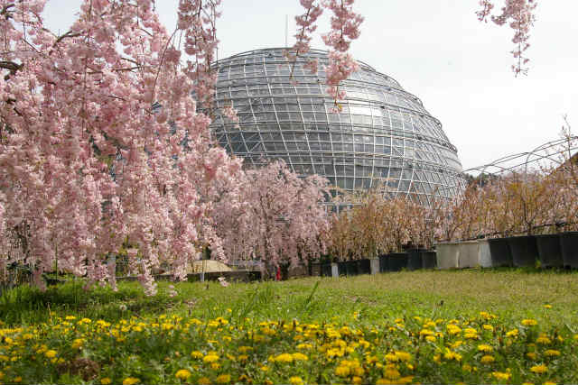 ![]() 温室と枝垂れ桜とタンポポと |