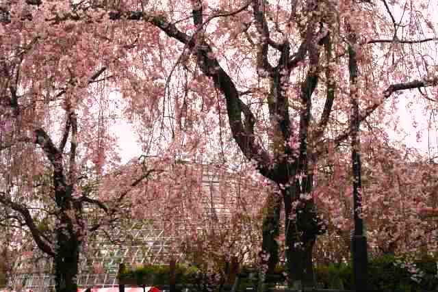 ![]() 温室も隠す枝垂れ桜が見事です Masami撮影 |