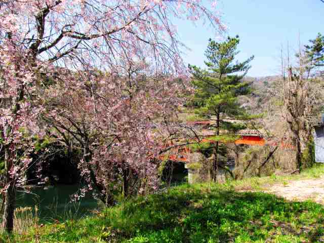 ![]() 川沿いの道に少し疲れ、枝垂れ桜を見つけ休憩。 |