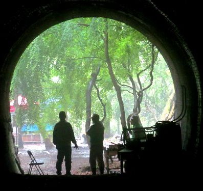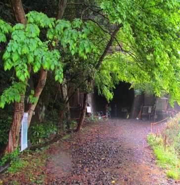 ![]() たき火で視界の悪い3号トンネルが受付です。「今日の最初のお客さんです」と迎えられた。 雨天は公開中止ですが、出かけてみたら「どうぞ6号まで歩けます」との返事。 |