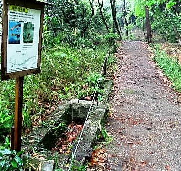 ![]() 4号トンネルまでは整備された竹林を眺めて進む 場内信号機台座跡:駅への安全確認の信号機 |
