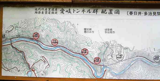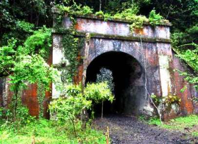 ![]() 6号トンネル:春日井口は、建設工事中の崩落の為計画より80m延長し330mに、 側壁のレンガ巻の厚さを七重巻に増加したり強度を上げる工事を施した。 |