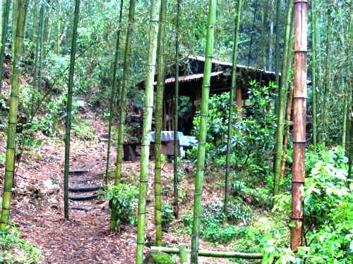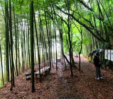 ![]() 竹林の中に建つ『東屋』は自由に休憩できます。ボランティアの方の休憩所でもある。 |