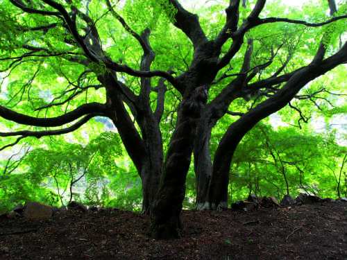 ![]() 『三四五のモミジ』 100年以上前にトンネル工事で邪魔なもみじの大木を切り倒した切り株から 3本の新芽が芽吹いて岐阜県下最大のもみじに成長したとのこと。 |