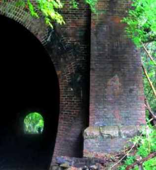 ![]() トンネルの強度を高めるアーチの迫石は赤レンガ5重巻 |