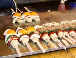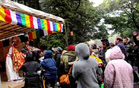 ![]() 神橋を渡り境内へ いろんな屋台が並ぶ一つに、珍しい「お好みぼ〜ん」 |