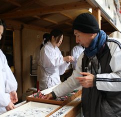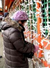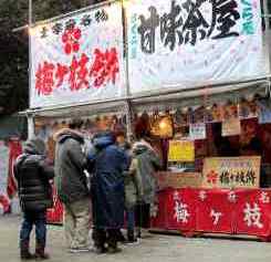 ![]() 抽選おみくじ\500を買い「末賞」の箸でした。 おみくじは微妙な「小吉」 名物の「梅ケ枝餅」を買う |