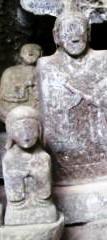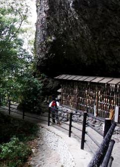 ![]() 左)無漏窟 右)曼荼羅石 :ここを境に山手方面は聖域。殿様も、籠を降り羅漢寺まで歩いたそうです。 |