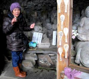 ![]() 五百羅漢の中央に釈迦如来坐像が安置 「しゃもじ」で願い事をすくう(救う)「祈願しゃもじ」が打ちつけてある |