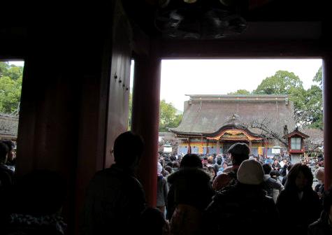 ![]() 『大宰府天満宮』 天神さま(菅原道真公 )をお祀りする神社は、ごった返している。 |