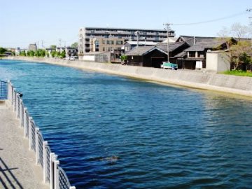 ![]() 阿久比川西の運河西の「魚太郎蔵のまち」の駐車場に止めて観光です |