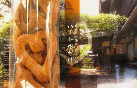 ![]() ハート形に見えるつるや、花言葉「初恋」にちなみ、地元の名物焼き菓子「松かげ」のハート形を開発。 1袋¥500と高価でしたが、甘さ控えめな上品な味でした。1人で食べつくすところでした。 |