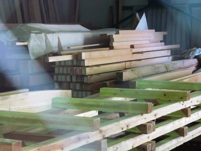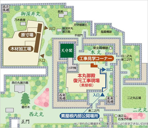 ![]() 本丸御殿再建の材料を加工している作業現場(余った木くずが自由にもらえました) |