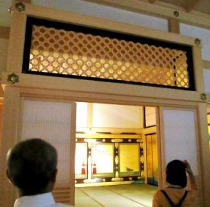![]() 柱には手あかが付くから触らない様にと・・・素足の人はスリッパをはかされます。 |