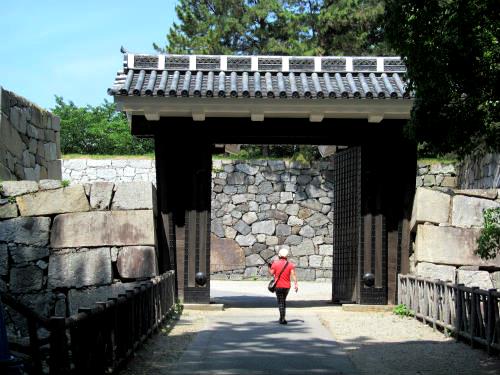 ![]() 堀には修復を待つ石垣が所狭しと並べられている(予算がない?) 『東二の門』 |