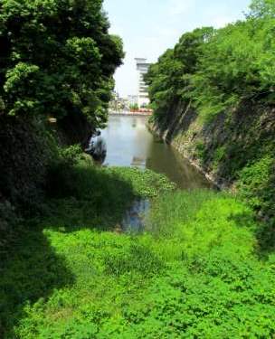 ![]() 敵の侵入を防ぐ工夫『鵜の首』 キャッスルホテルが首の根方向に見える |