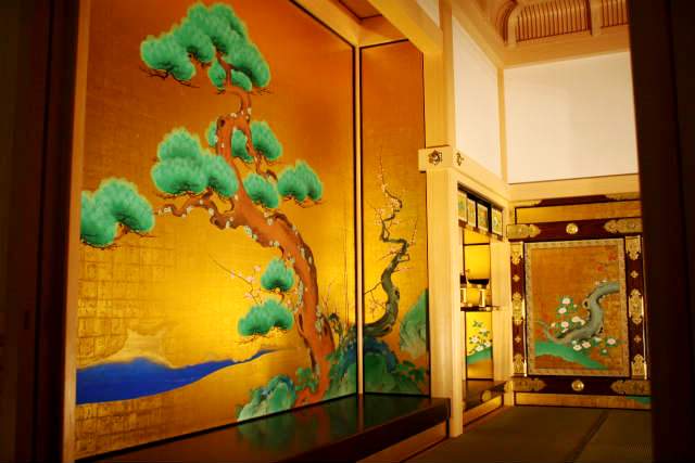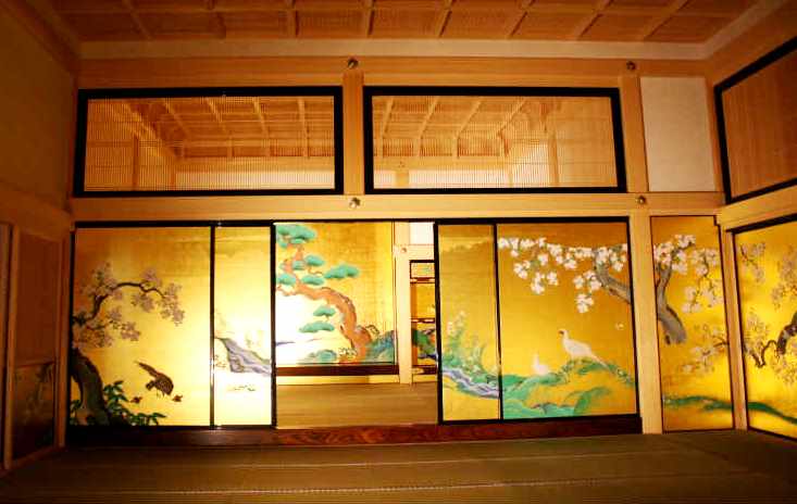![]() 重文のふすま絵群は、幕府の御用絵師の「狩野派」が描いたもの。 |