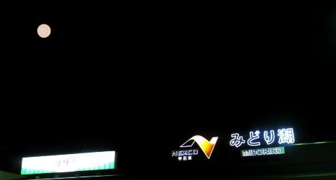 中央道はお盆明けでも車は多い! 22:05 長野道「みどり湖PA」の満月
