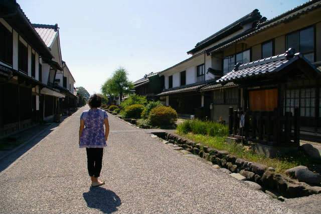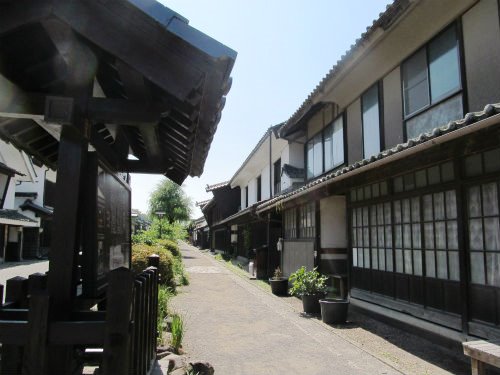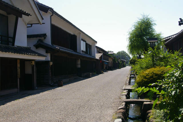 ![]() 道の中央を流れる用水、その両側に立ち並ぶ格子戸のはまった美しい家並みが往年を伝える。 |