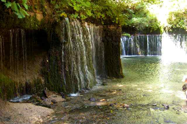 ![]() 落差は3m、幅は70 m。 地下水を源流とする潜流瀑(せんりゅうばく) |