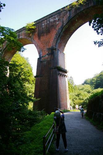 ![]() 高さ31mのレンガ造り橋脚を見上げる |