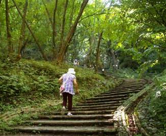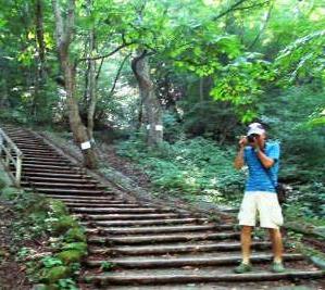 ![]() ここから眼鏡橋まで登ります。 途中スズメバチ注意の看板に驚き、頭上を見上げた。 |