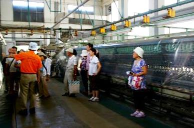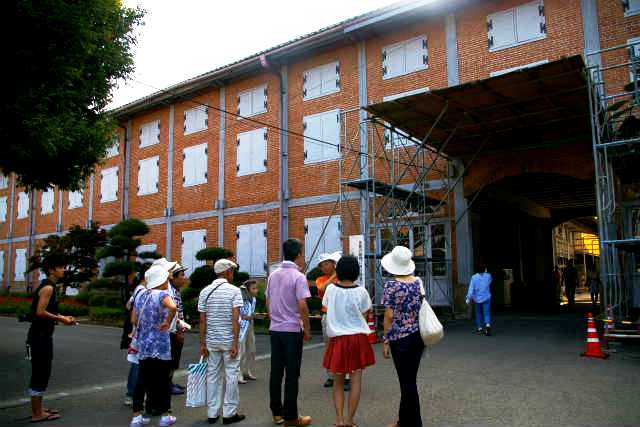 ![]() 案内の人に説明を受ける(この後時間が無いので自由行動) 生糸値段の低迷などによって昭和62年(1987年)3月操業を停止。その後も場内の建物は大切に保存されています。 |