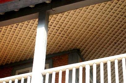 ![]() 『女工館(2号館)』には豪華な天上を施す。当時の日本にはない特徴。 |