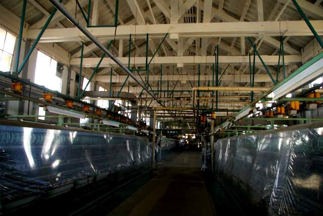 ![]() 色々なレンガ積みを紹介 繭をベルトコンベアで2階の乾燥場に運び込む |