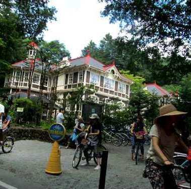 ![]() 旧三笠ホテルを眺めて軽井沢銀座に向かいます |